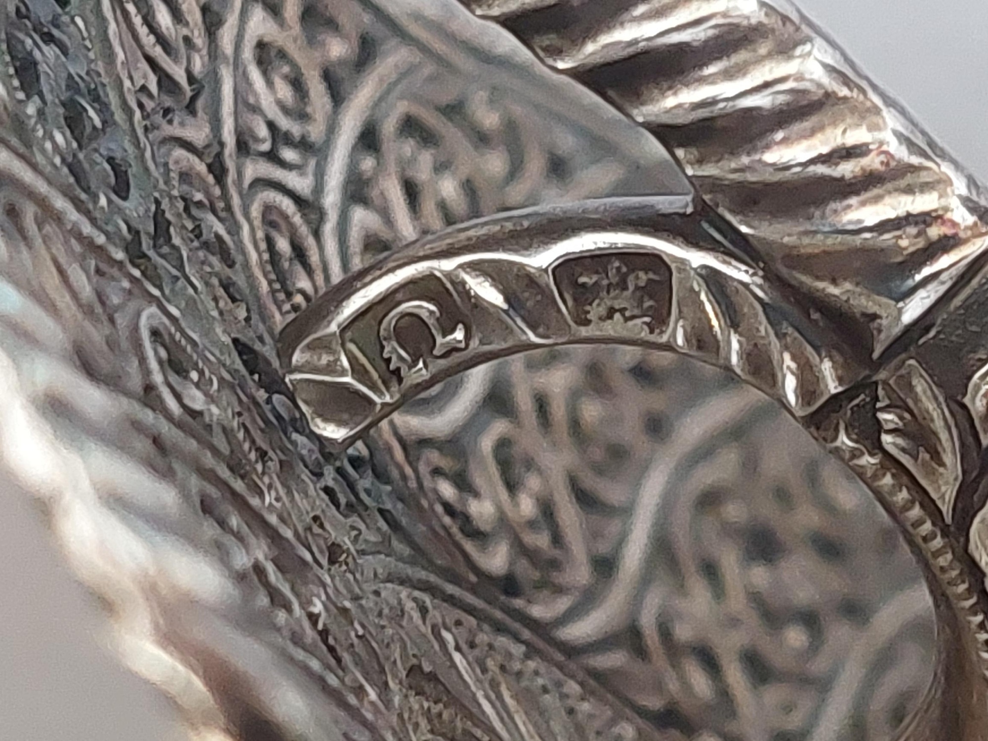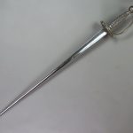 Kinman was born in 1728 and was sworn free of the Founders’ Company in 1750, when presumably he started to make silver hilted swords under his own name and was admitted to livery in 1757. Kinman entered his first mark at Goldsmiths’ Hall in 1759 (Grimwade 1990 reference 3210) which is his mark on this sword. William Kinman was at his most prominent in the earlier part of his career, when this sword was made, later becoming bankrupt due to