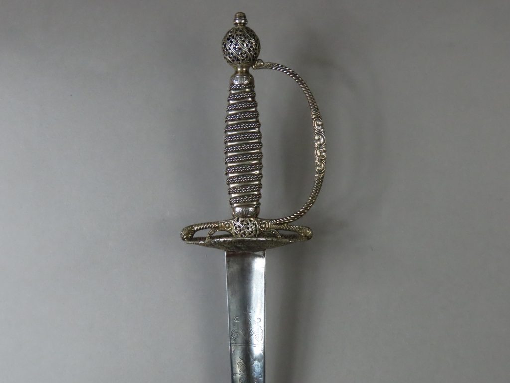 Silver hilted small swords were fashionable attire for 18th century gentlemen. Mostly worn for effect as a show of wealth and taste, someone wearing such a sword was also announcing to the world that he could use it, and was at risk of being invited to do so. Despite the stylish and delicate appearance of these swords they were formidable dueling weapons.