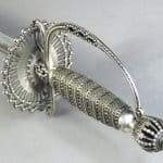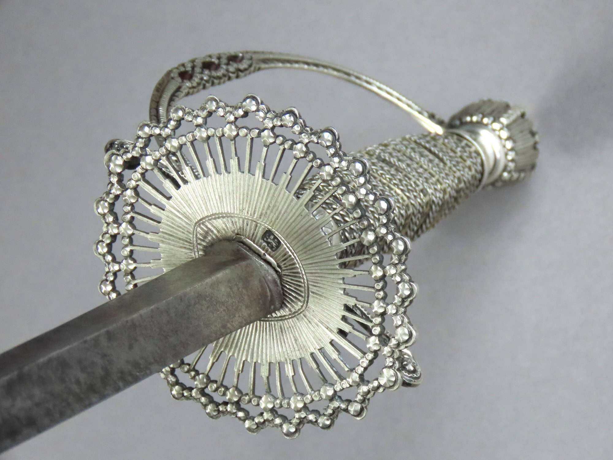 For a near identical sword by William Kinman see Leslie Southwick, “London Silver-Hilted Swords”, Royal Armouries, 2001, page 291, Plates 75, 76 & 77, for a sword in The Royal Armouries, Collection Reference: IX.3782. And for further information on Kinman’s life of see pages 159 and 160.